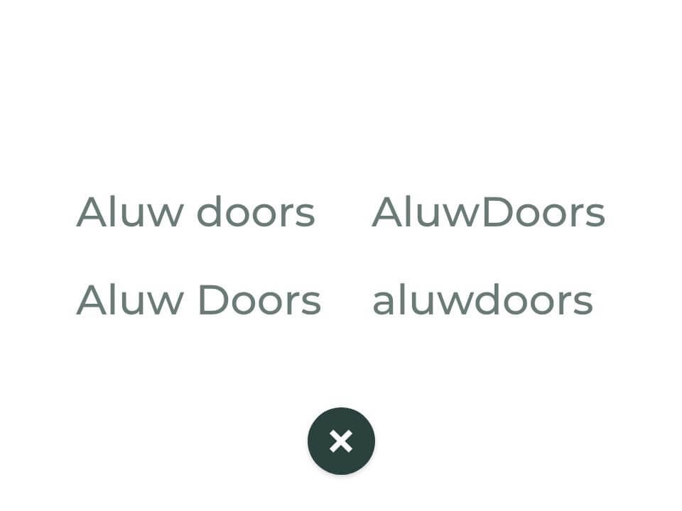 U heeft hierboven kunnen lezen hoe belangrijk wij onze naam vinden. Dit omdat het een stukje is van onze identiteit. Wij vinden het uiteraard belangrijk dat onze naam dan ook correct wordt geschreven en gebruikt. Aluwdoors is dan ook de enige correcte versie. Het moet volledig aan elkaar geschreven worden en de A is de enige hoofdletter in het woord. Zie hieronder weergegeven.